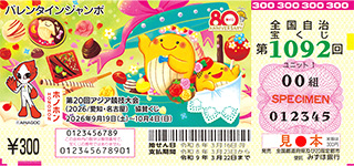 ★第1092回 バレンタインジャンボ宝くじ 3億円 有楽町大黒天/新橋烏森口 ★発売日 令和8年2月3日(火)〜3月6日(金) ※バレンタインジャンボミニ3000万同時発売 ★抽選日 令和8年3月16日(月)